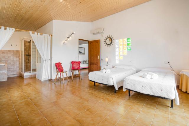 El interior de la finca es espacioso y bien equipado. La cocina, totalmente equipada, permite preparar comidas con total autonomía, y el salón-comedor ofrece un espacio confortable para el descanso y la convivencia. La vivienda dispone de conexión Wi-Fi, lavadora y aire acondicionado con frío y calor en los dormitorios, garantizando una estancia confortable en cualquier época del año.